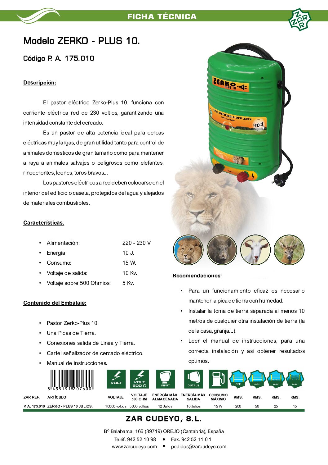 Gracias a su diseño compacto y resistente, el PA175010 ofrece una solución duradera y eficiente para el control de ganado (bovino, equino, ovino, caprino) en instalaciones rurales o agropecuarias. Es compatible con alambre liso, hilo conductor o cinta para cercas eléctricas.